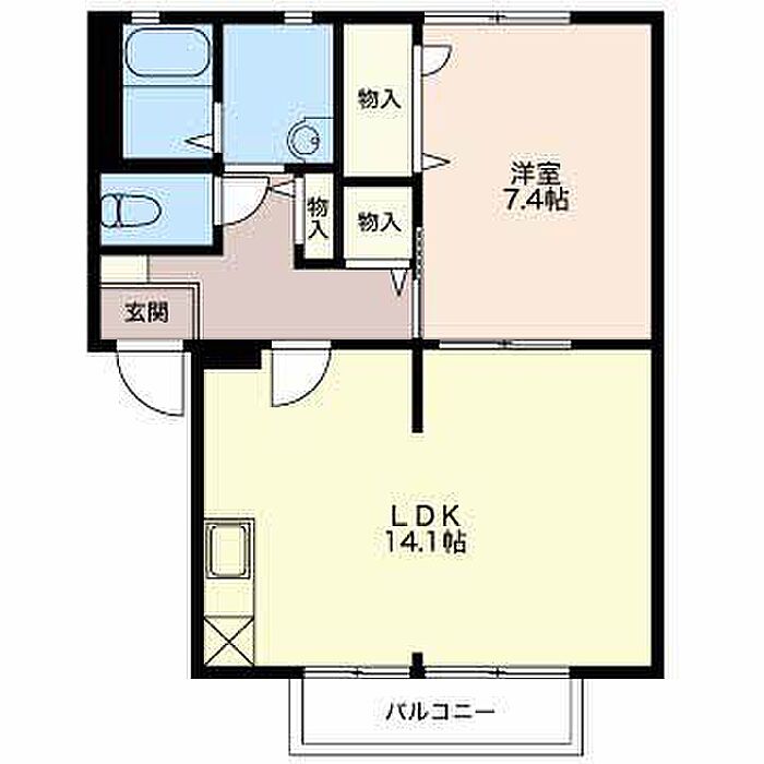 洋室7.4 LDK14.1 ※1畳=1.62m2)