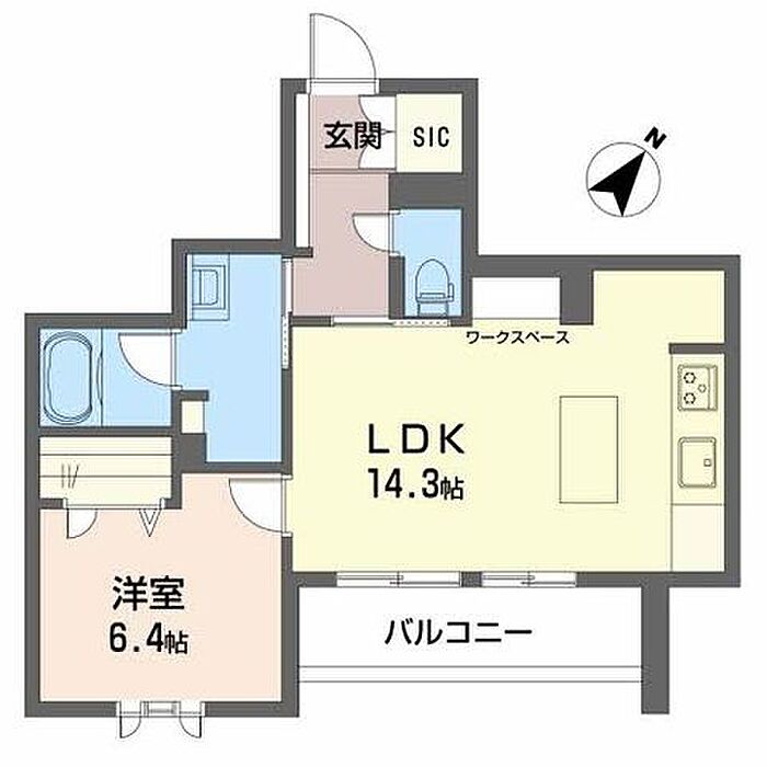 洋室6.4 LDK14.3 ※1畳=1.62m2)