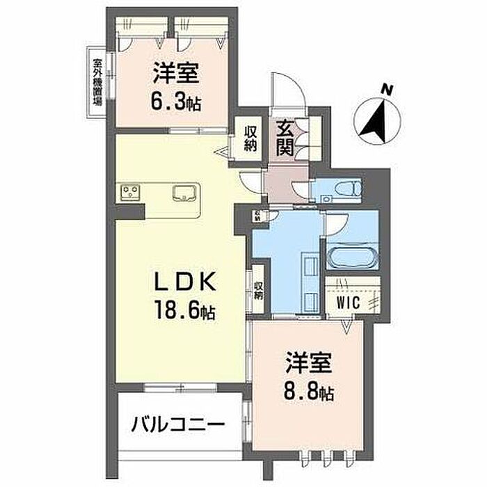 洋室8.8 洋室6.3 LDK18.6 ※1畳=1.62m2)