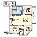 洋室7.1 洋室6.1 洋室5.4 LDK17.4 ※1畳=1.62m2)