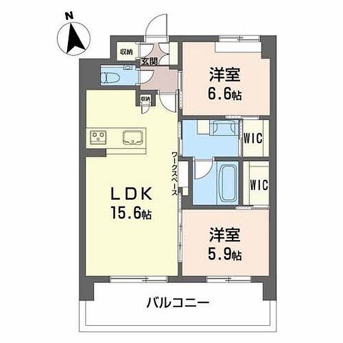 洋室6.6 洋室5.9 LDK15.6 ※1畳=1.62m2)