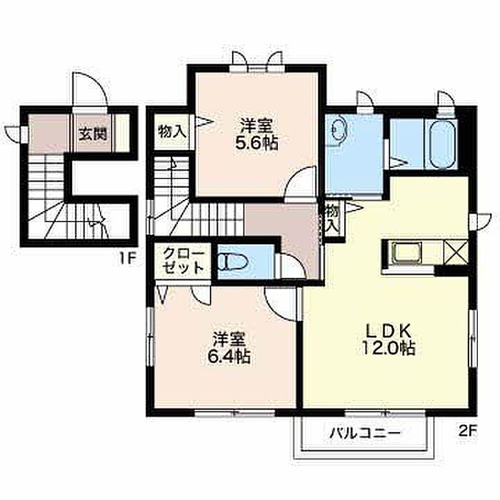 洋室6.4 洋室5.6 LDK12 ※1畳=1.62m2)