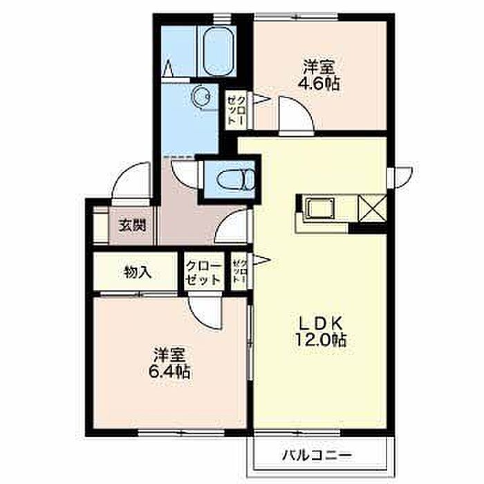 洋室6.4 洋室4.6 LDK12 ※1畳=1.62m2)