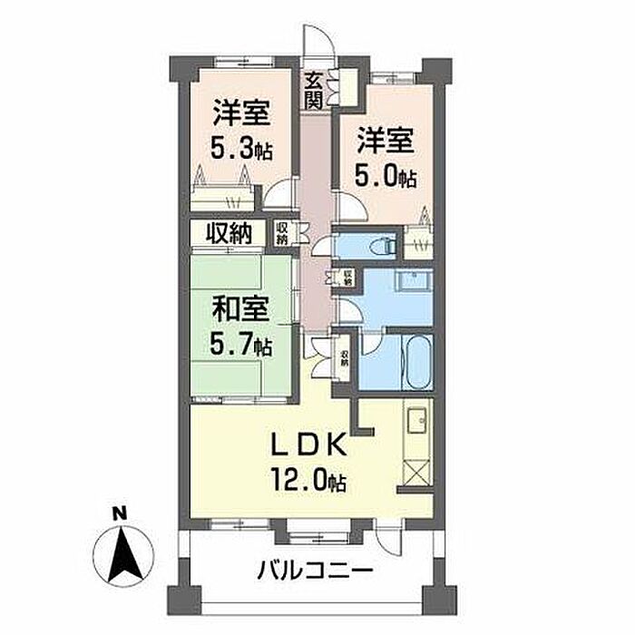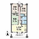 和室5.7 洋室5.3 洋室5 LDK12 ※1畳=1.62m2)