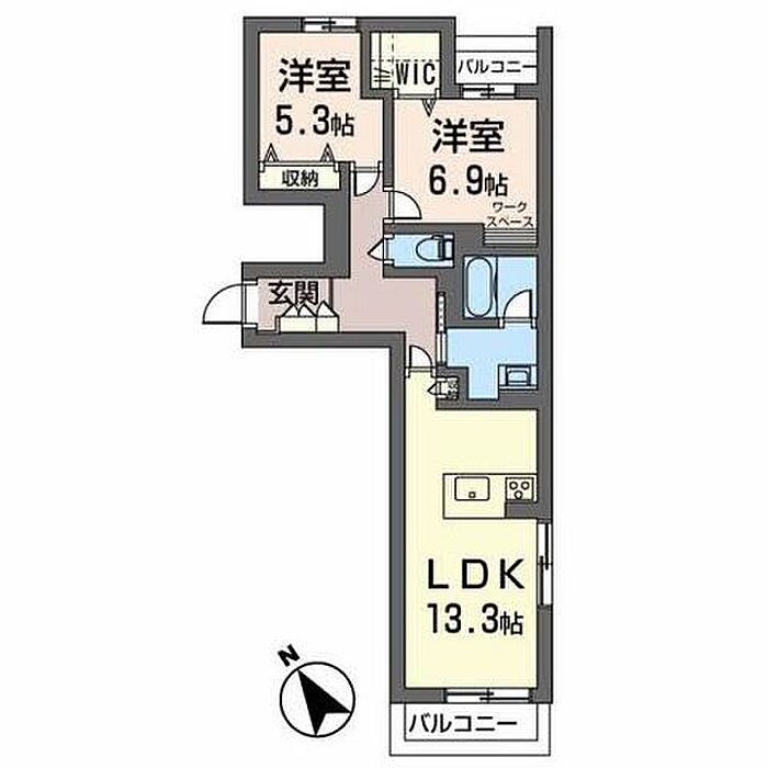 洋室5.3 洋室6.9 LDK13.3 ※1畳=1.62m2)