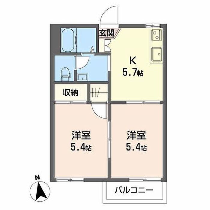 洋室5.4 洋室5.4 K5.7 ※1畳=1.62m2)