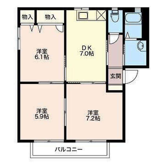 洋室7.2 洋室6.1 洋室5.9 DK7 ※1畳=1.62m2)