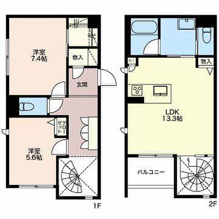 洋室7.4 洋室5.6 LDK13.3 ※1畳=1.62m2)