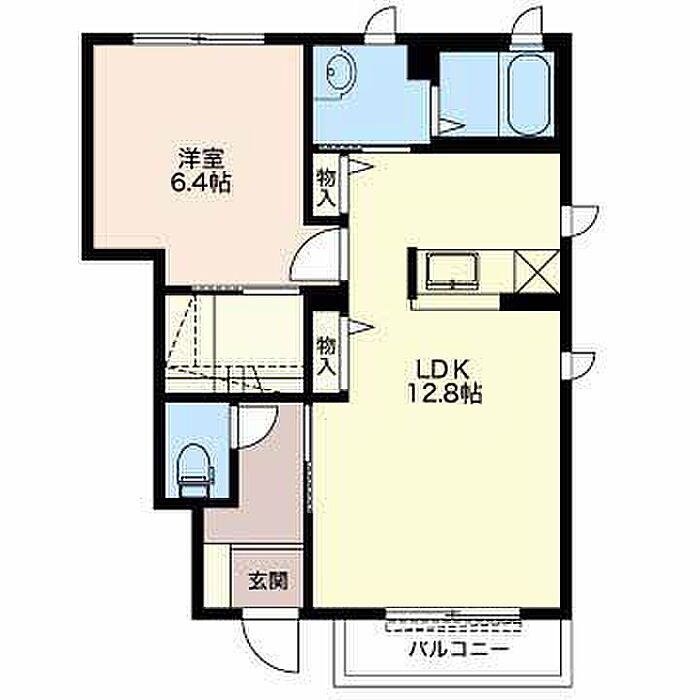 洋室6.4 LDK12.8 ※1畳=1.62m2)