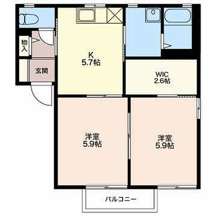 洋室5.9 洋室5.9 K5.7 WIC2.6 ※1畳=1.62m2)