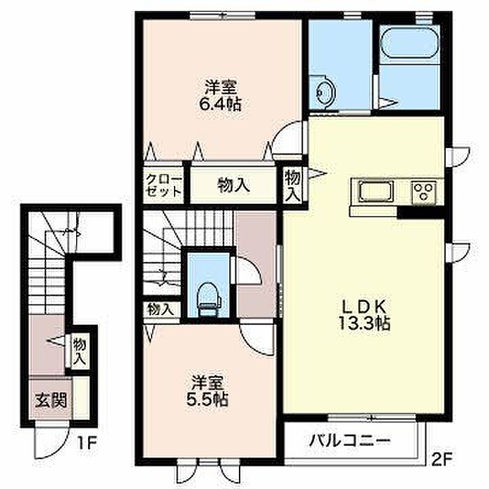 洋室6.4 洋室5.5 LDK13.3 ※1畳=1.62m2)