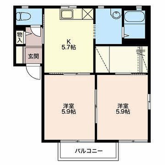 洋室5.9 洋室5.9 K5.7 ※1畳=1.62m2)