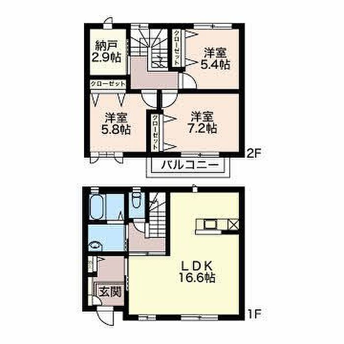 洋室5.8 洋室7.2 洋室5.4 LDK16.6 ※1畳=1.62m2)