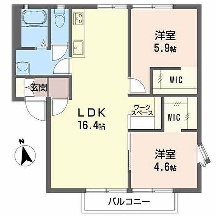 洋室5.9 洋室4.6 LDK16.4 ※1畳=1.62m2)