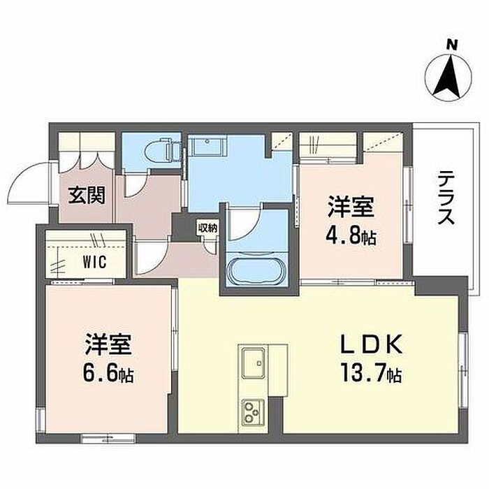 洋室6.6 洋室4.8 LDK13.7 ※1畳=1.62m2)