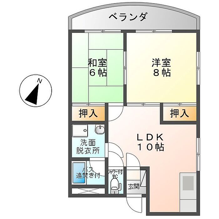 リビング広々♪ベランダ広々の2LDK♪追い焚き・シャワートイレ付です♪