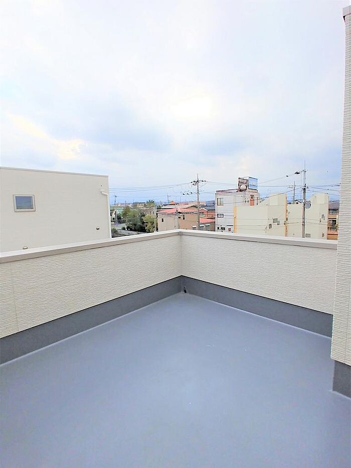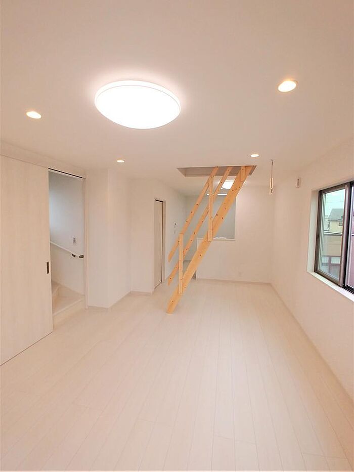 2階リビングにロフトへ続く階段がとても印象的で、広々したスカイバルコニー(屋上スペース)もあり、住まい方も広がります!