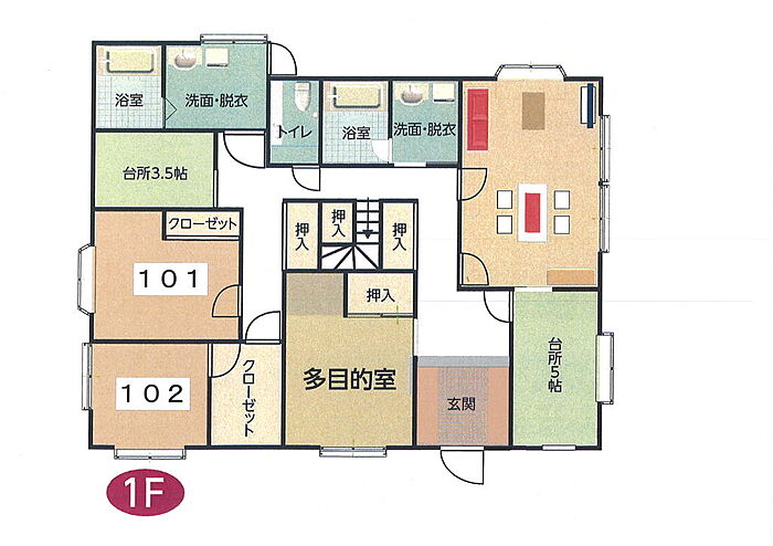中古二世帯住宅(9SLDKK)をシェアハウスとしてリフォームしました。キッチン2ヶ所・お風呂2ヶ所・洗面所3ヶ所・トイレ3ヶ所・玄関タッチパネルキー・個室ナンバーロックです。