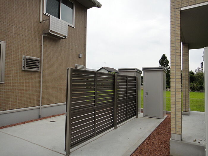 キッチンサイズは広めの2600です。バルコニーも広めです。専用庭には散水栓があり、洗車などにも便利です。専用宅配ボックス付きです。