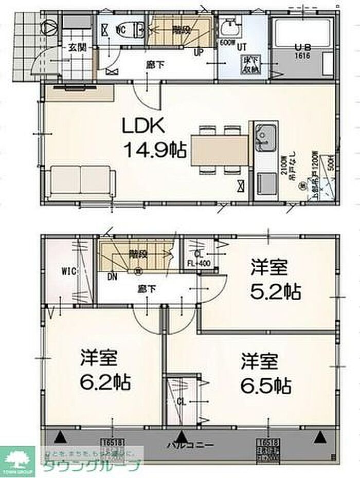 リビングダイニングキッチン 14.9帖)