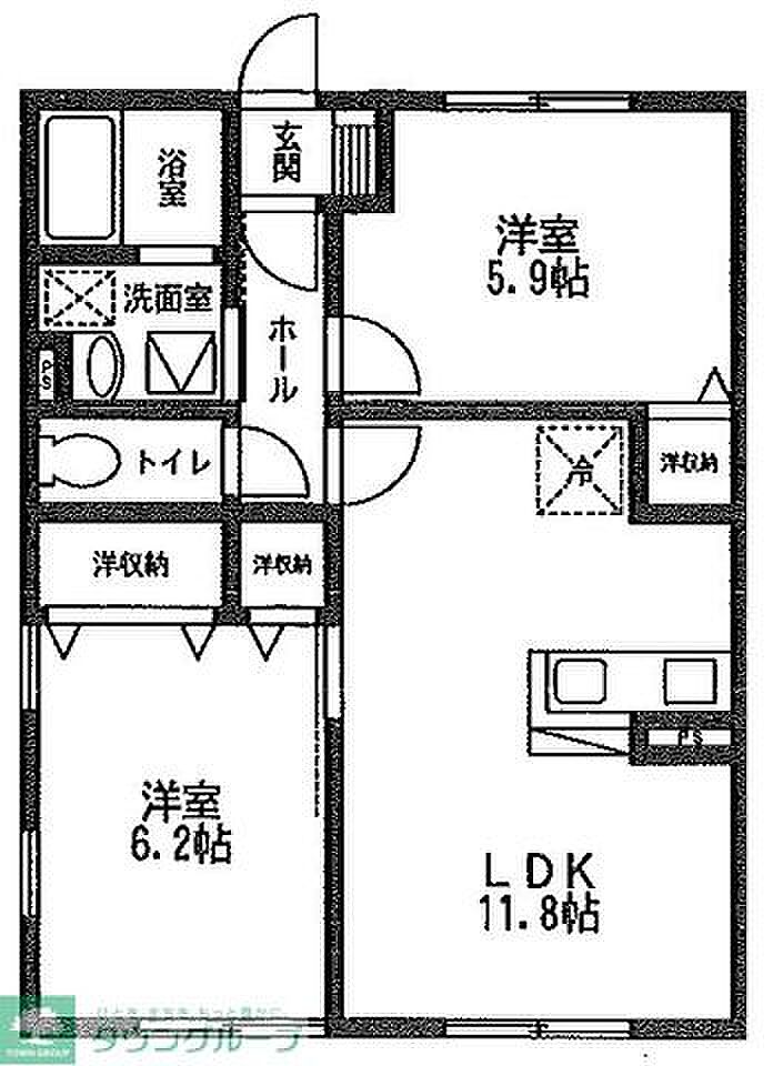 鶴ヶ島市大字上広谷 アパート 2LDK/1階