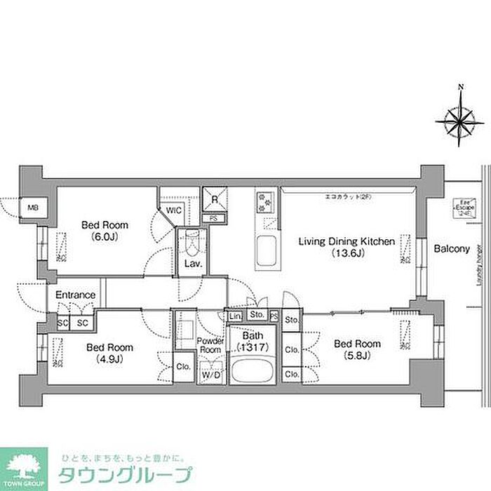コンフォリア・リヴ八坂富士見 3LDK/2階