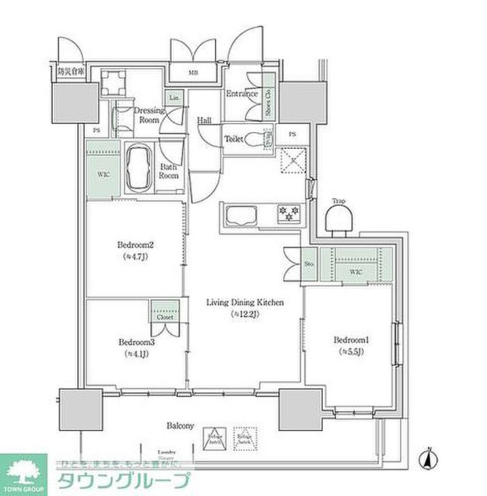 ブルックサイドレジデンス木場 3LDK/9階