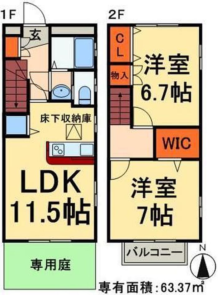 アビタシオングルエA棟 1 2LDK/1階