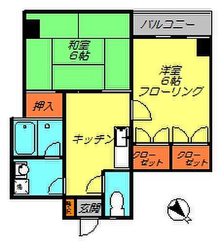 アバハウス 201 2K/2階