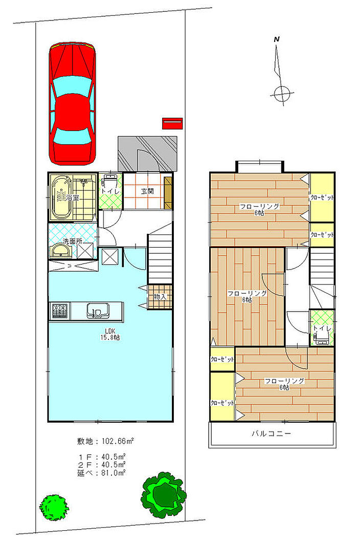 洋室 6帖(2階)×3)