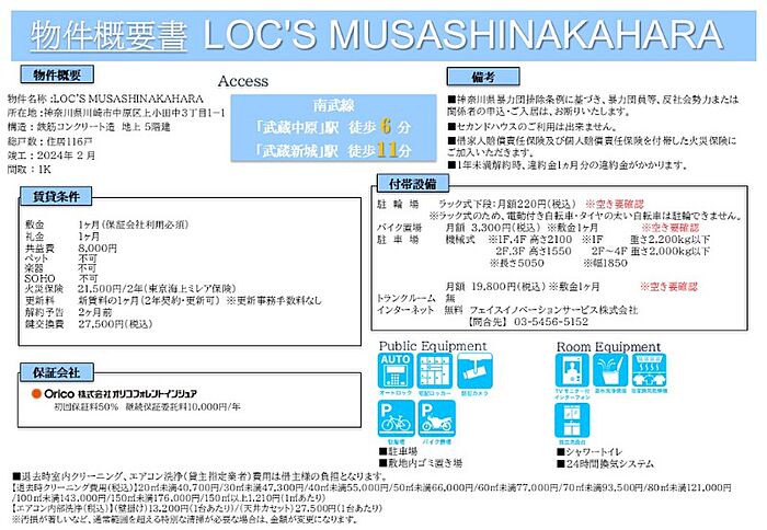 保証会社利用料:初回契約時:50%、更新時:10、000円、※保証会社の更新は1年毎となります