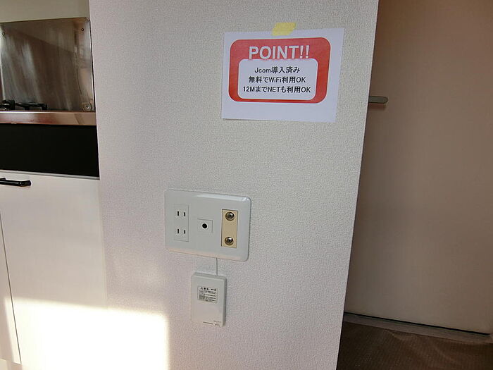 WiFi完備、スマホもタブレットもサクサクです。ネット利用料無料(Jcom)。ペット飼育の場合は、家賃2,000円UPで、入居時に承諾料1ヵ月お支払いとなります。ぺットのためにコンセント位置が高めになっているのが嬉しい。また全室角部屋感覚のお部屋です。