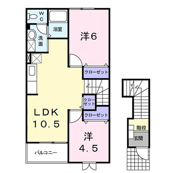 福島市南矢野目字戸ノ内 アパート 2LDK/2階