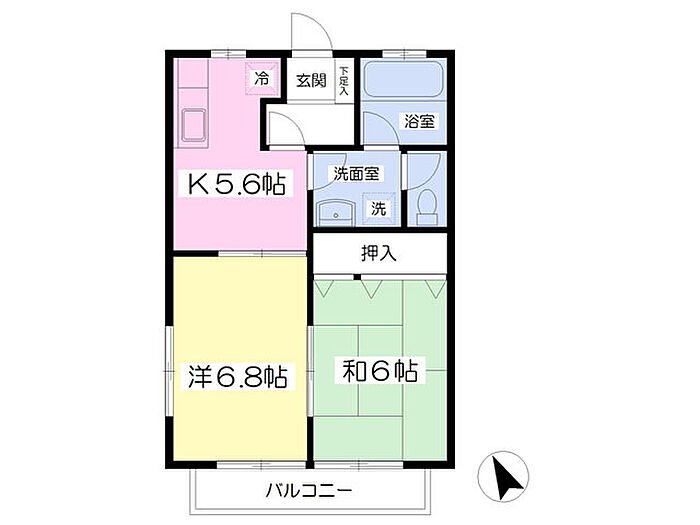 メゾンあぶくまD 208 2K/2階