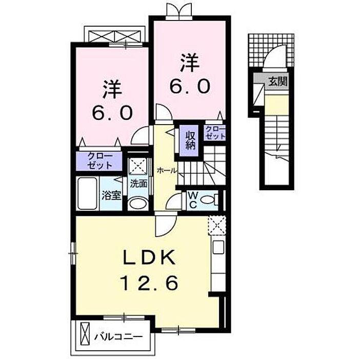 松山市南斎院町 アパート 2LDK/2階