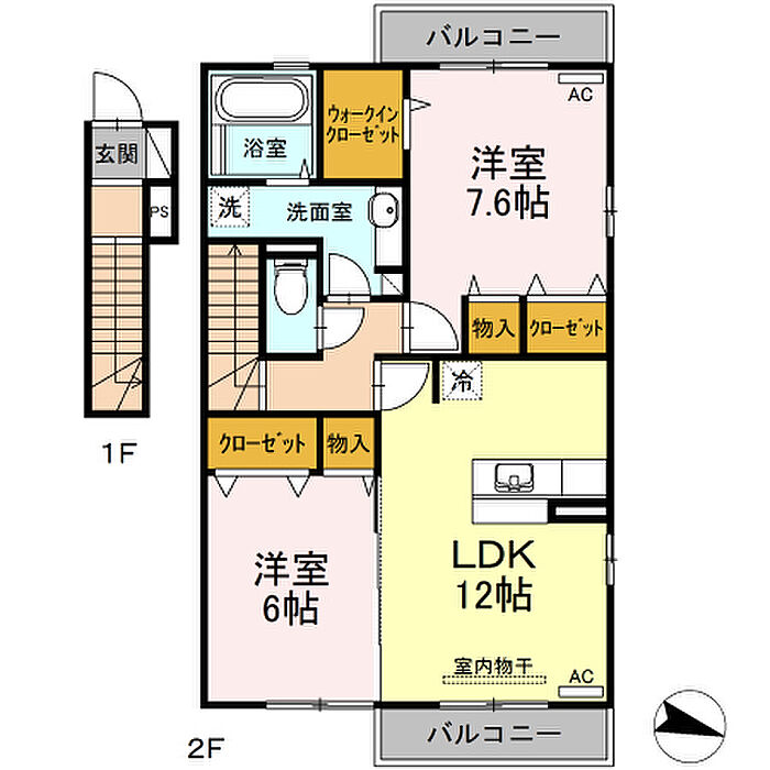 松山市清住2丁目 アパート 2LDK/2階