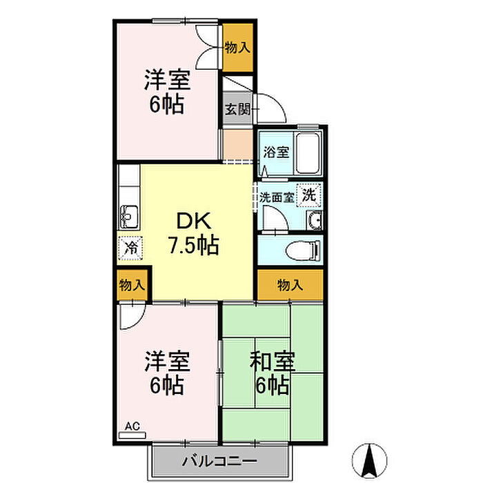 松山市平田町 アパート 3DK/2階