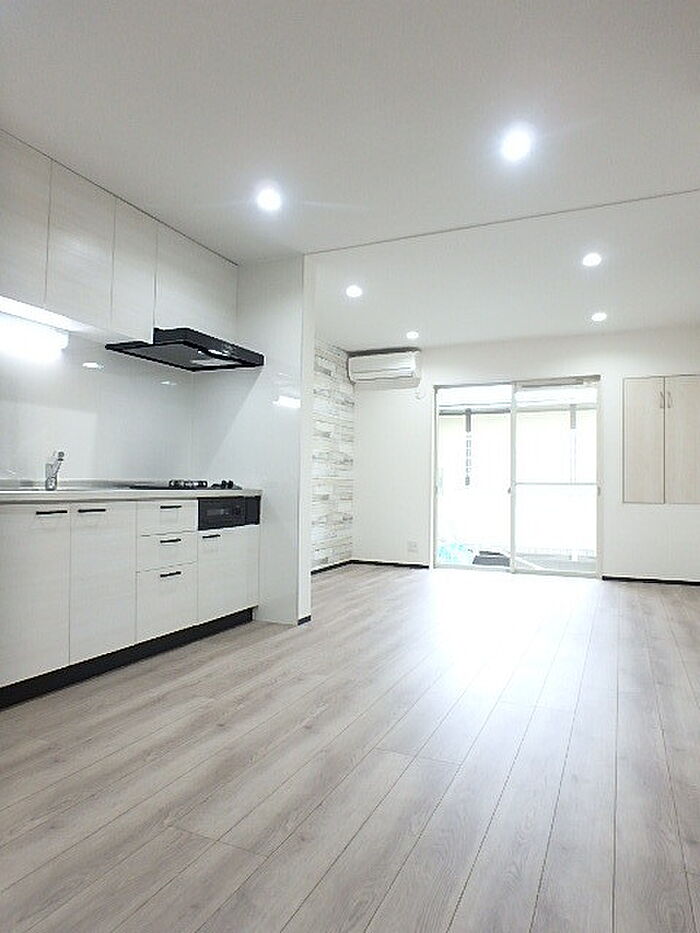 2DKから1SLDKに間取り変更、水回りすべて新品交換、床、天井、壁クロス貼り替え、建具交換、玄関ドアとサッシ、給湯器は既存物2025年12月中旬工事完了予定