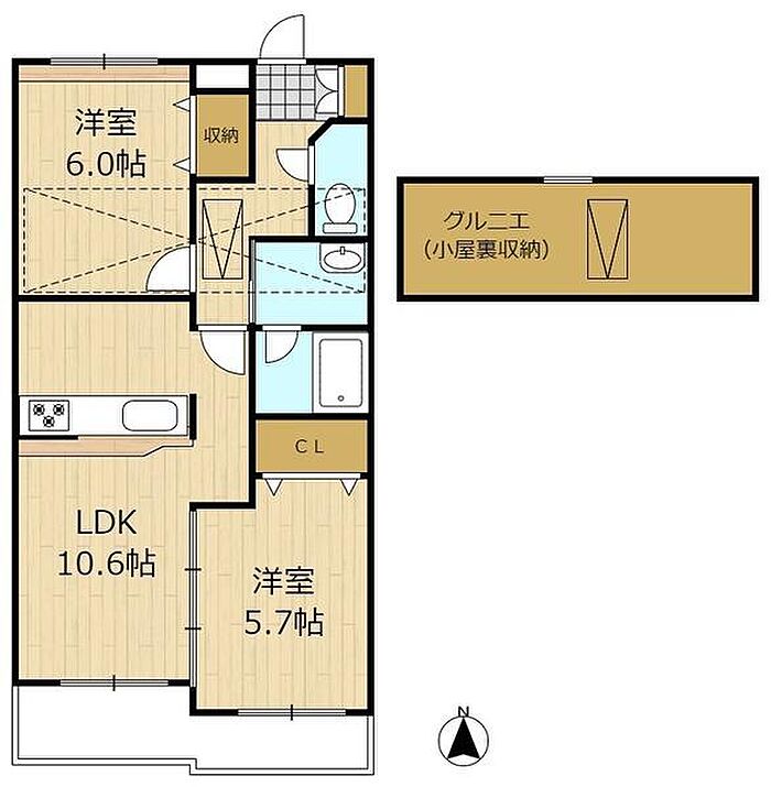 大型グルニエ付きで圧巻の収納力!おしゃれな外観・便利な駅チカの2LDK♪陽当りも良好です♪
