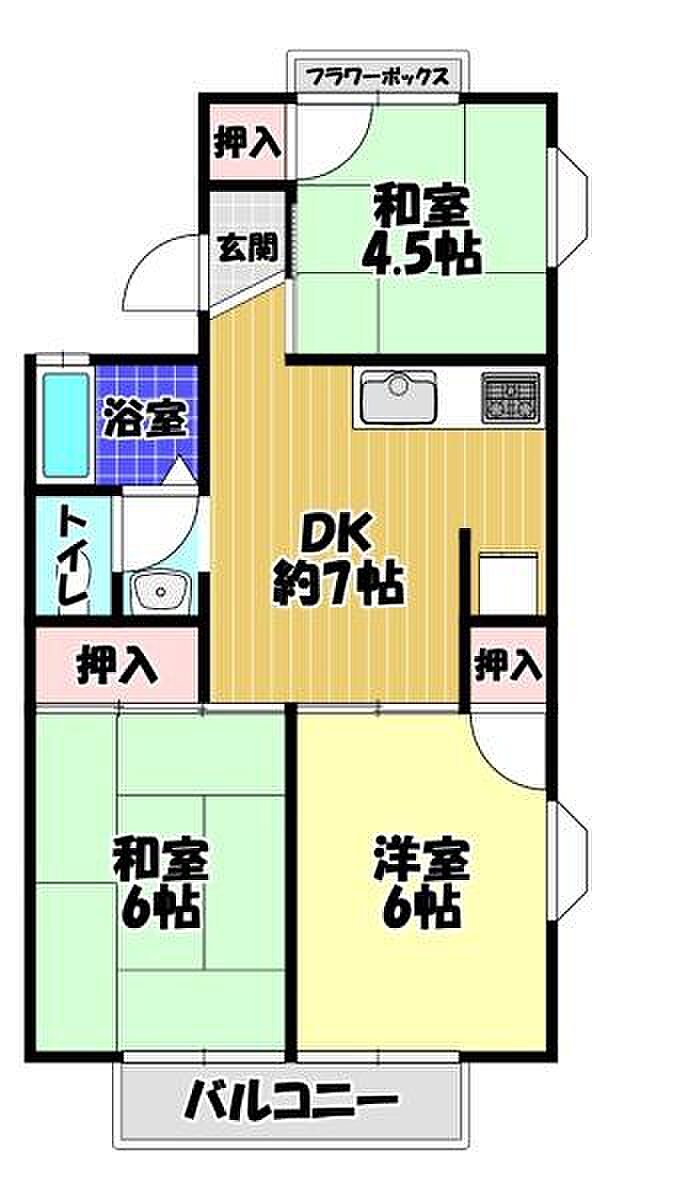 駐車場1台付の3DKです!人気の学校区・スーパー近く便利!