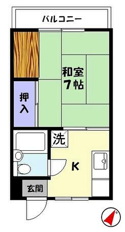無料Wi−Fi済み!!2階、最上階♪1Kですが、7帖+板の間の和室なので広いですよ