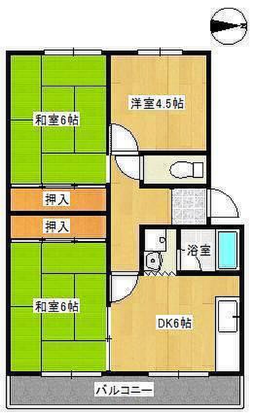 風呂トイレ別バルコニー付き。2つの和室に押入収納あり3部屋あ為家族で住む方にオススメ。