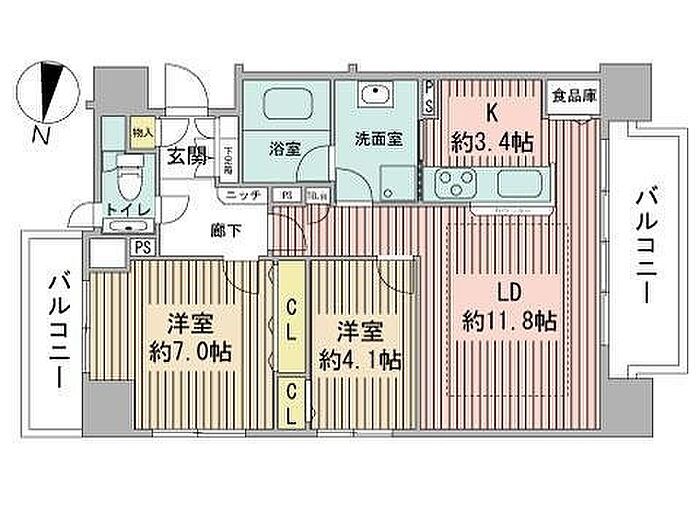 クリオ大通ラ・モード 2LDK/4階
