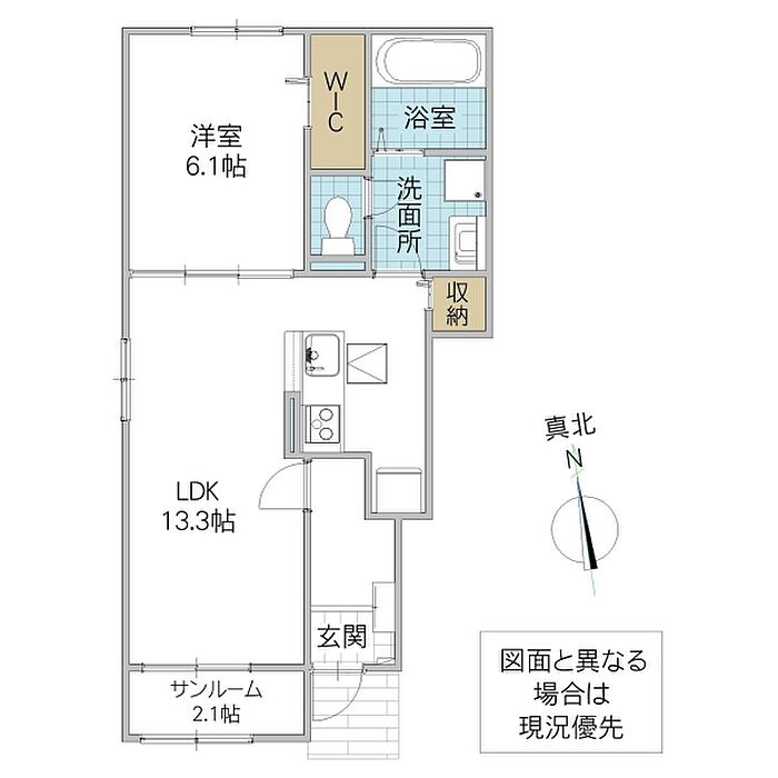 (洋6.1/LDK13.3/サンルーム2.1)