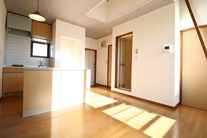 10帖ロフト付きワンルーム。南向きの角部屋で日当たり良好。