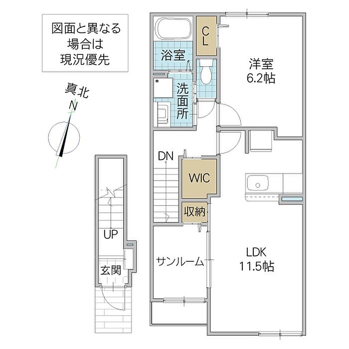 (洋6.2/LDK11.5/サンルーム)
