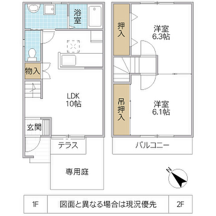 (1F:LDK9.6//2F:洋6/洋6.25(メゾネット))