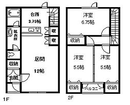 賃貸 一戸建て末広1−5二戸借家 2F