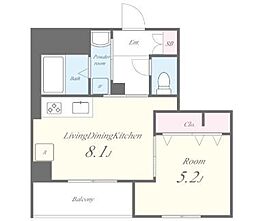 1DK:DK部分が8畳未満