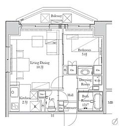 1DK:DK部分が8畳未満